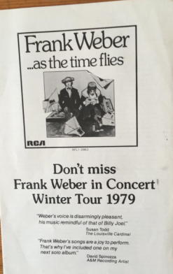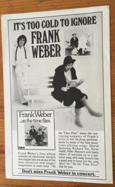 約一年半の活動後、トリオは解散。フランクは、その後もニューヨーク界隈の様々なミュージックシーンにて演奏し続ける。もっぱらホテルやクラブでのピアノソロがメインの中、ジャズヴォーカリスト「Ruth Waters」がいた主要なジャズトリオの一員に。また、かの有名なヴォーカルグループ「The Four Lads」のロードツアーのバックアップトリオとしても活躍した。NYに戻ってからは、ジャムセッションの機会が格段に増え、仲間たちを携えながらピアニストとしての自分を確立させていく。この時期の記憶に残るギグとして、「Zoot Sims」や「Al Cohn」との共演、そしてニュージャージー州ニューアークの教会において、サキソフォン奏者のアイコンとして知られる「Rahsaan Roland Kirk」が挙げられる。